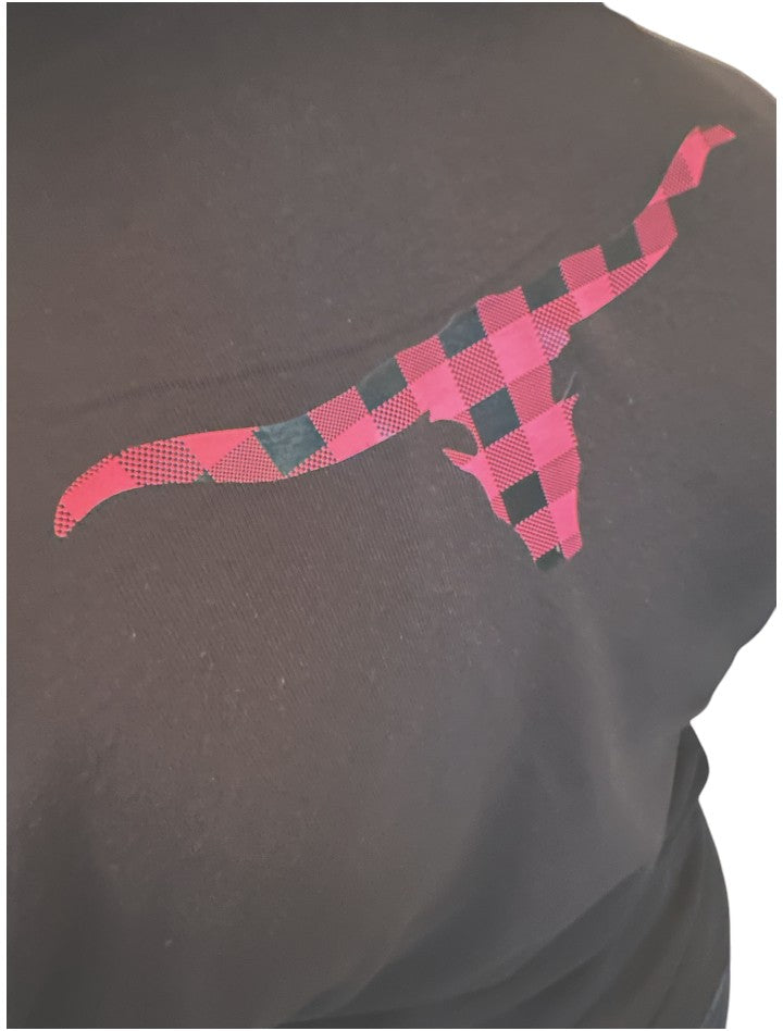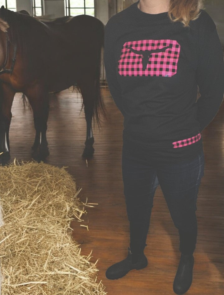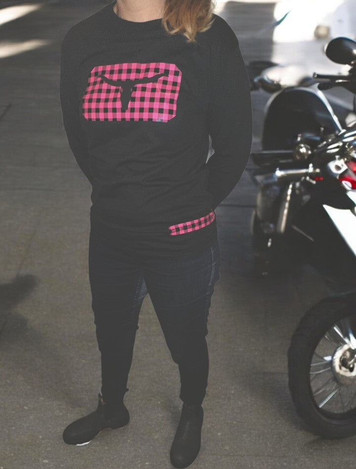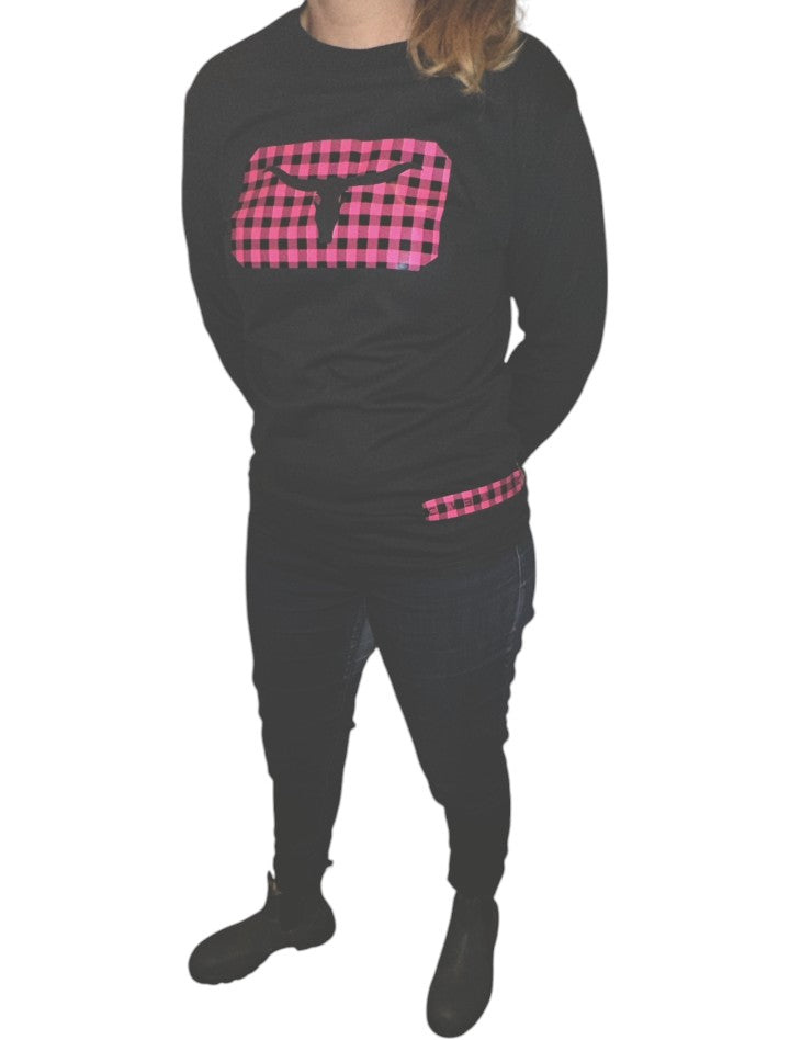 Women Long Sleeves Black Shirt - Pink Plaid print