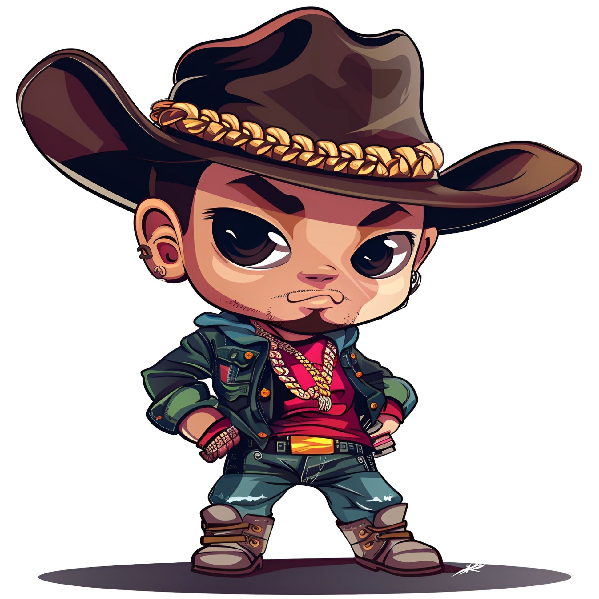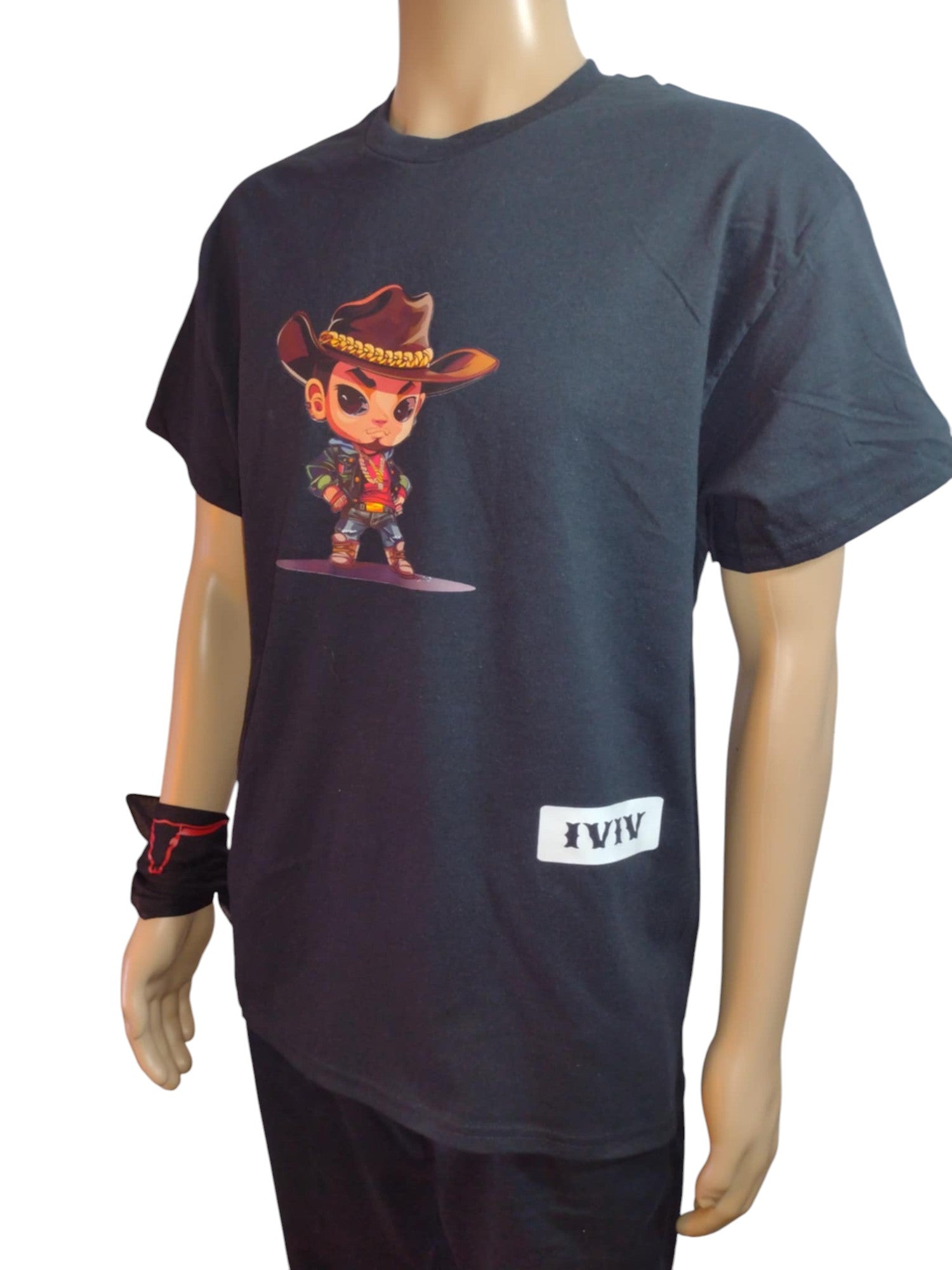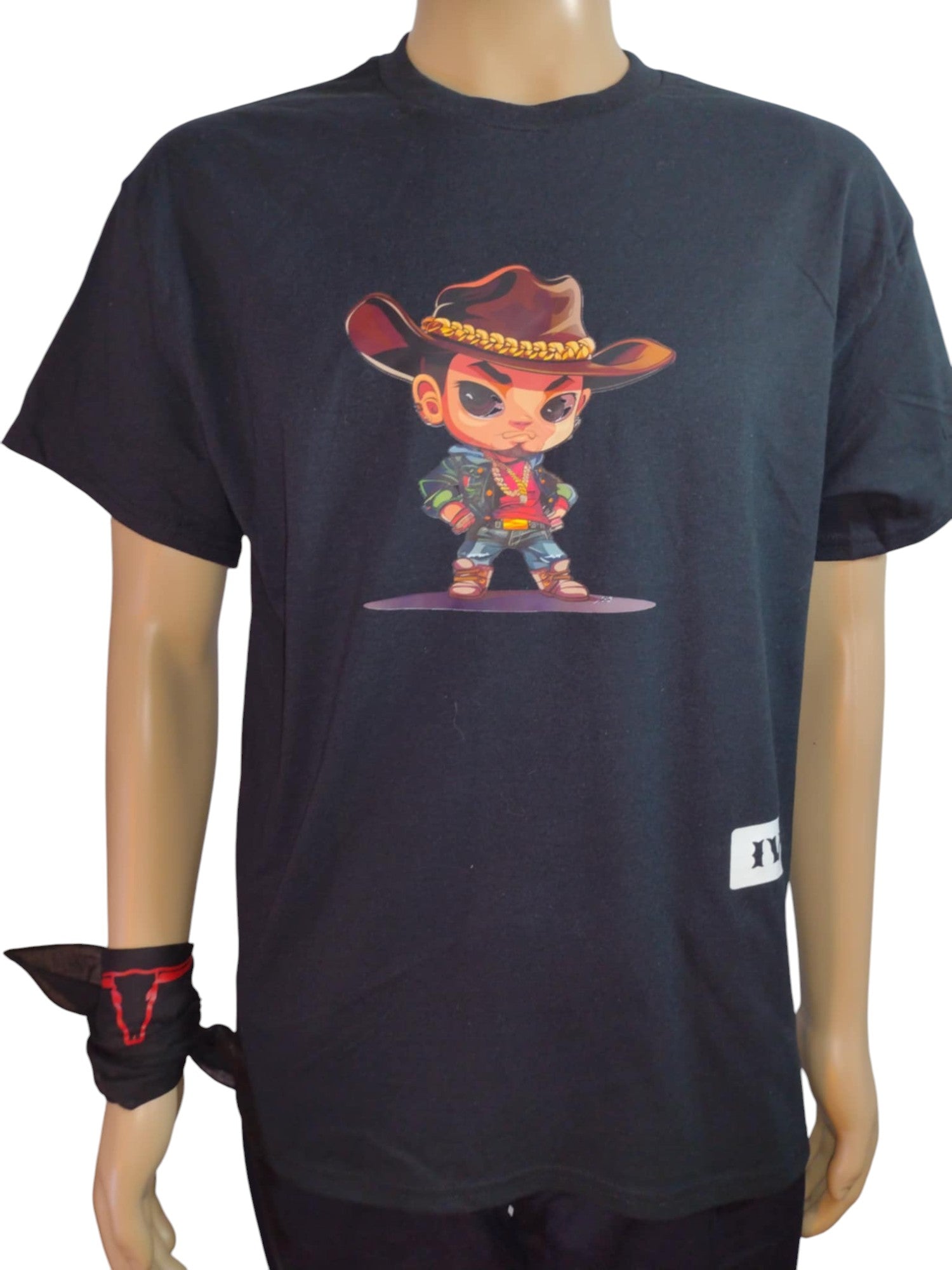 Unisex Black T-Shirt - Cartoon Cowboy print