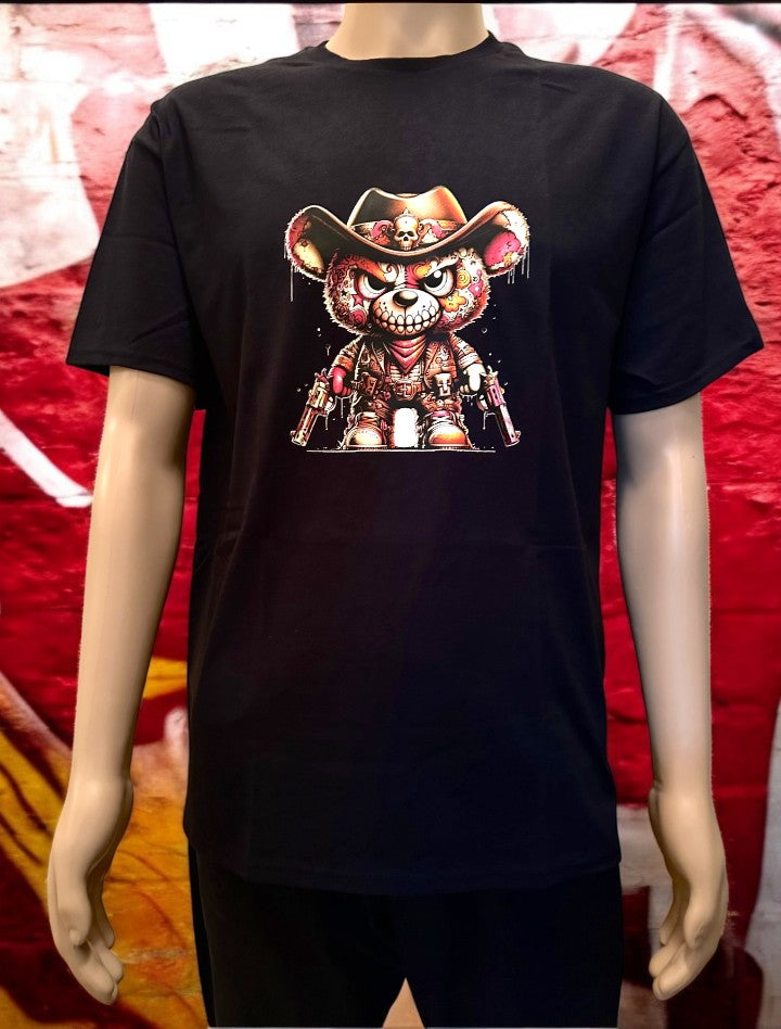 Unisex Short Sleeves Black T-Shirt - Gunslinger Bear print